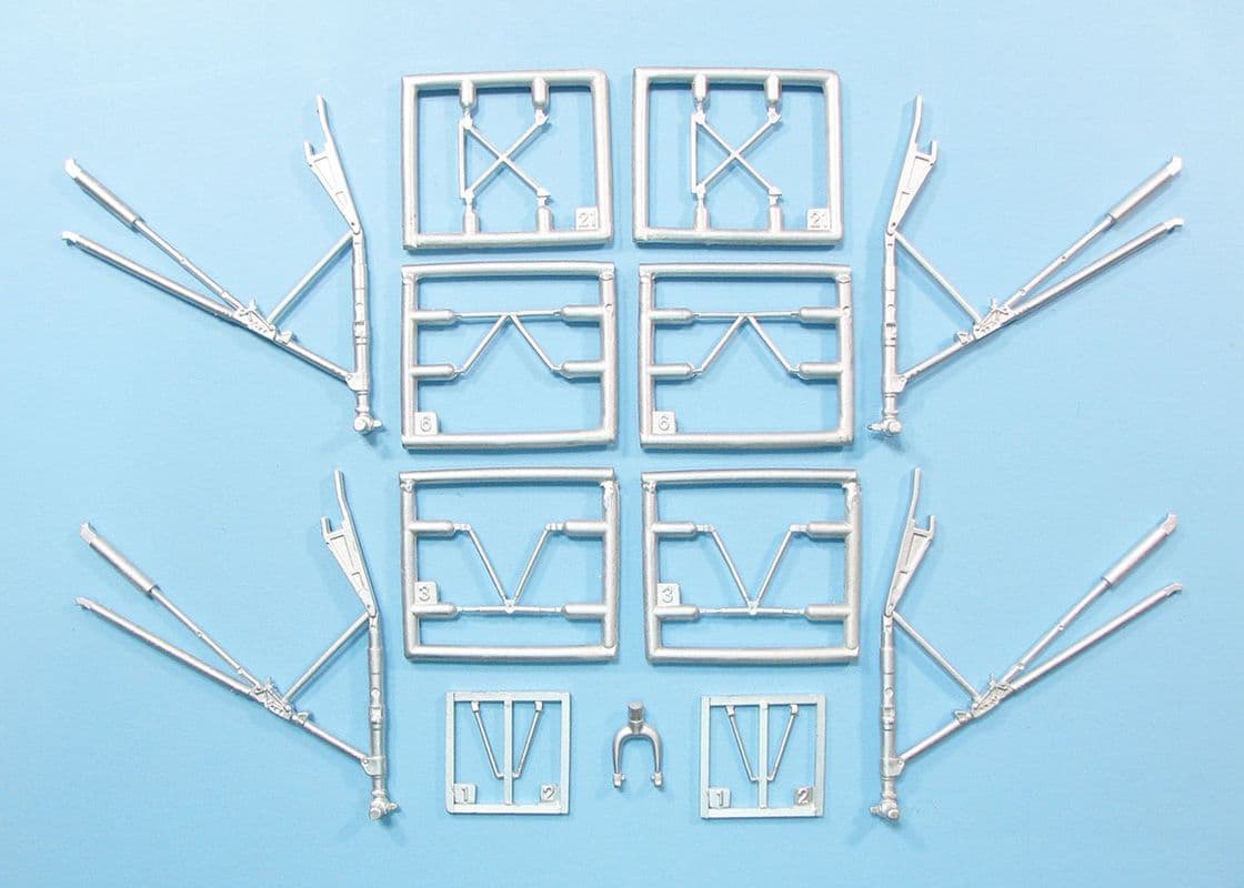 This pack contains replacement oleo struts and retraction arms for the main undercarriage and an new yoke for the tailwheel.