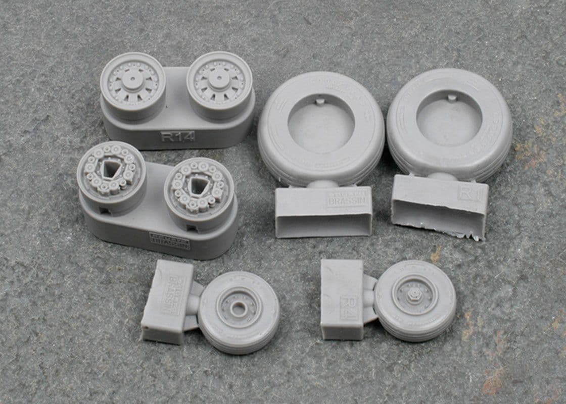In this pack you get replacement main and nose wheels, the former having separate hubs that replicate the early style of casting on them. The set also comes with die-cut, self-adhesive masks to aid painting the hubs.
