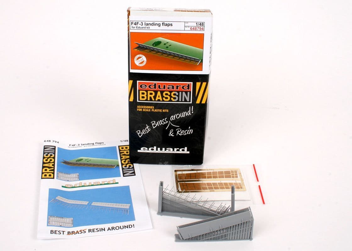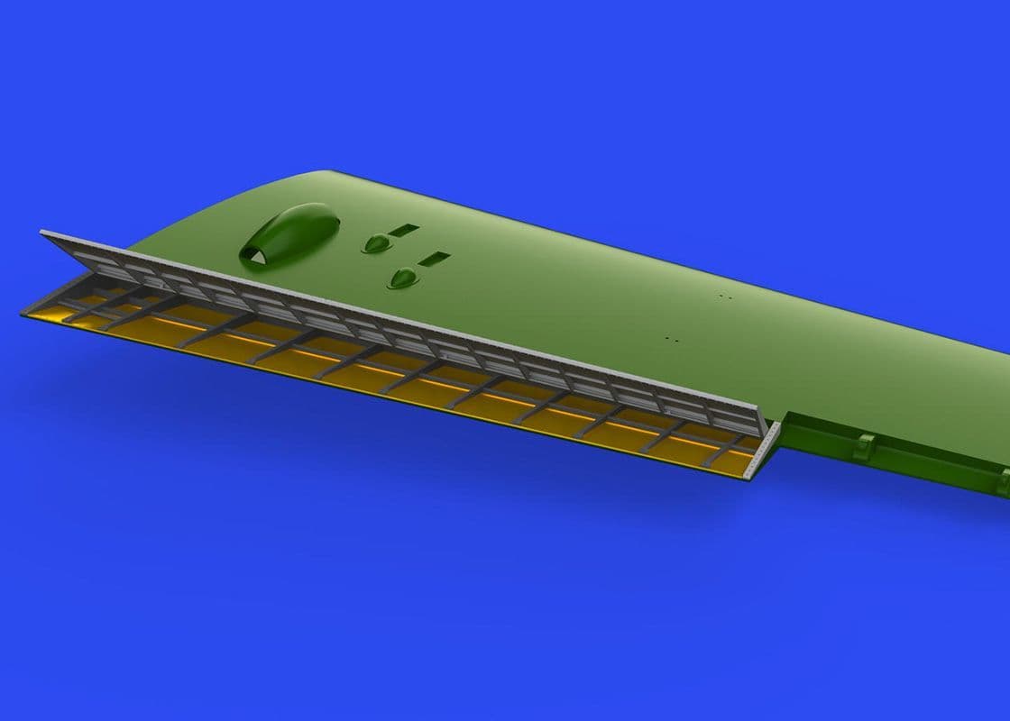 This set offers the flaps themselves as 3D-printed resin, with the exposed interior of the upper wing structure as etched brass. Surgery to the kits parts are minimal, although there is a lot of careful cleaning up to be done due to the nature of 3D-printing on these new flaps.