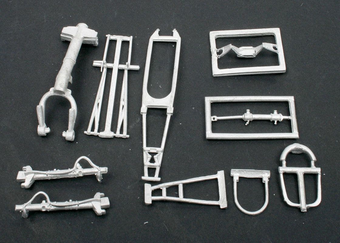 In this set you get the complex nose leg with all the linkage, plus the main oleo legs with separate compression linkage and retraction arms. You also get the support stays for the nose wheel mudguard.