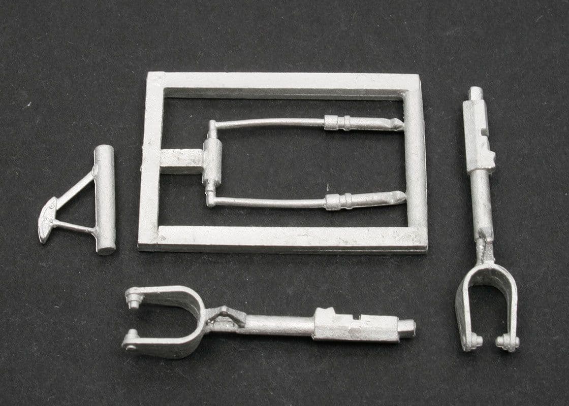 This set contains the main oleo legs along with their retraction arms as separate parts plus a new tailwheel skid assembly.