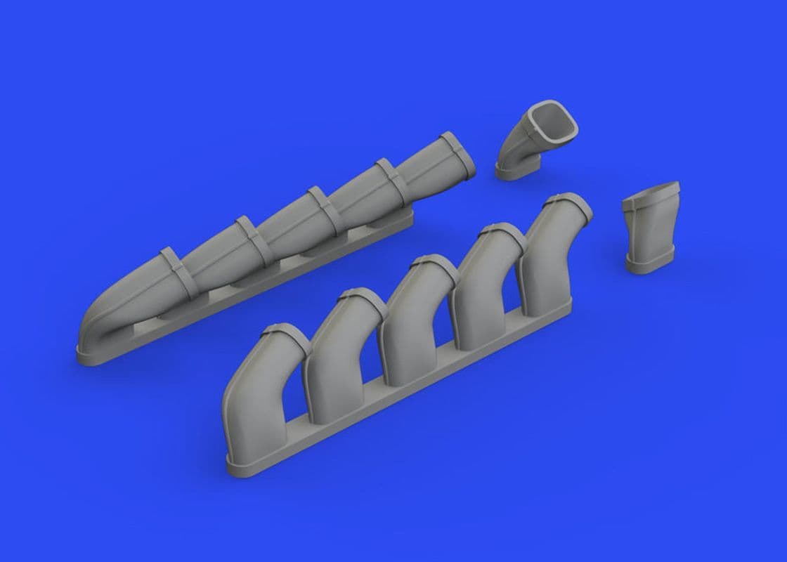 This set offers replacement exhausts stack with much higher levels of overall detail and deeply recessed outlets
