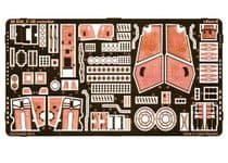 This fret offers internal rib and other details for the nose wheel well, liners for the interior of the doors and the roof of the main undercarriage bays, afterburner rings, venturi ahead of the engine compressor, compression links, eyelets and brake lines for the nose and main oleos, new inner liners for the main undercarriage doors, exhaust rings for the missiles, arming vanes for the bombs and filler caps for the drop tanks