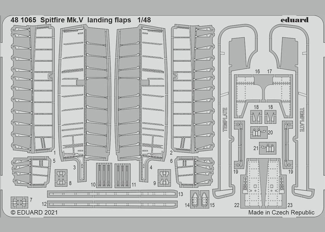 This fret set offers separate landing flaps along with the corresponding region of the wing's interior with all the ribs as fold-up to ease assembly. The frets also include a template to aid you whilst cutting out the inboard regions from the kit parts.